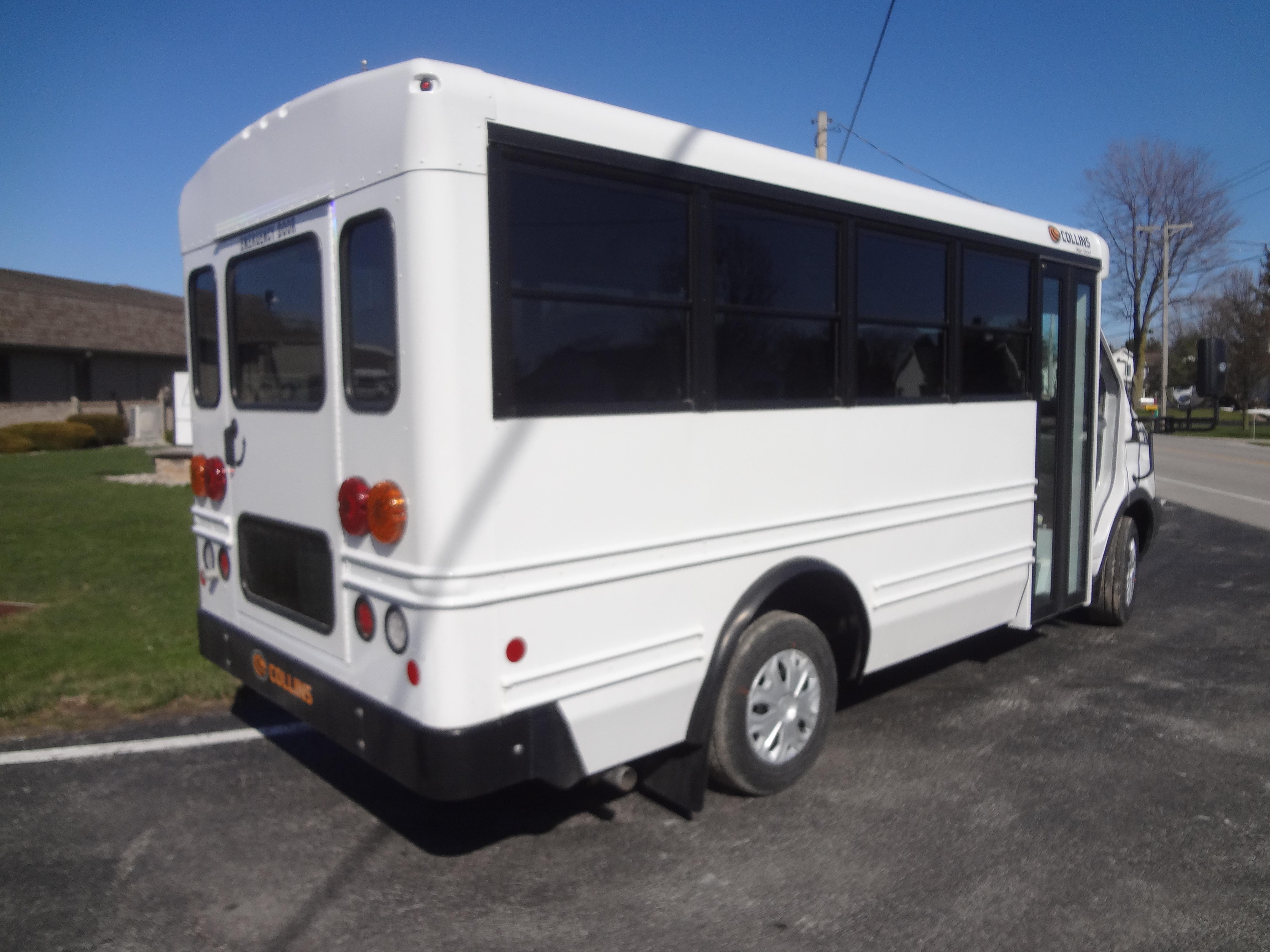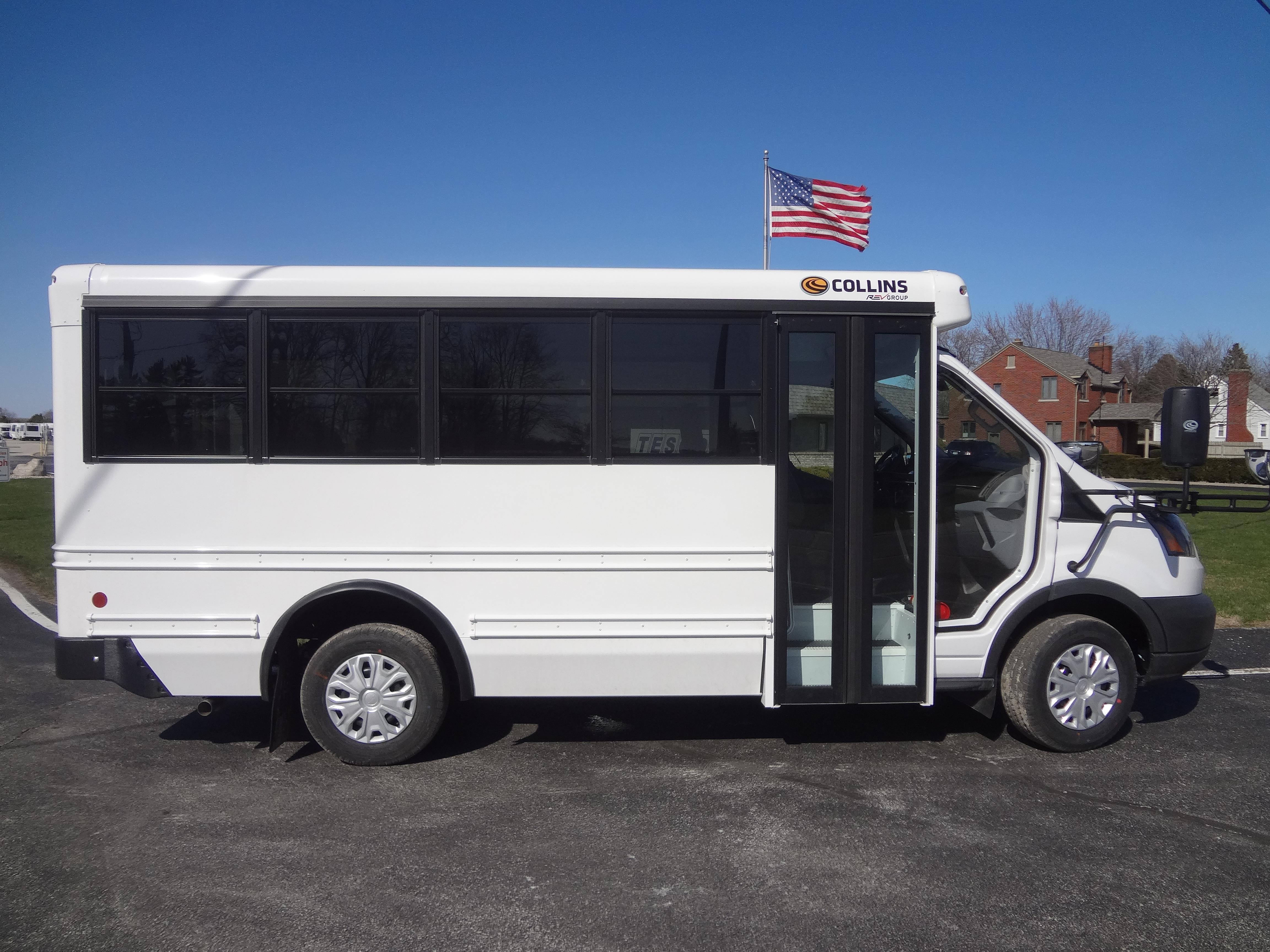 The NEXBUS Type A school bus by Collins is available on a Chevrolet, GMC, or Ford chassis with a gas, diesel, CNG, propane, or hybrid engine. With so many options, the NEXBUS can be built to your specifications. This bus has features unlike its alternatives, including larger passenger windows, external storage compartments, top of the line electrical panel, and SafeGuard XChange Seating.