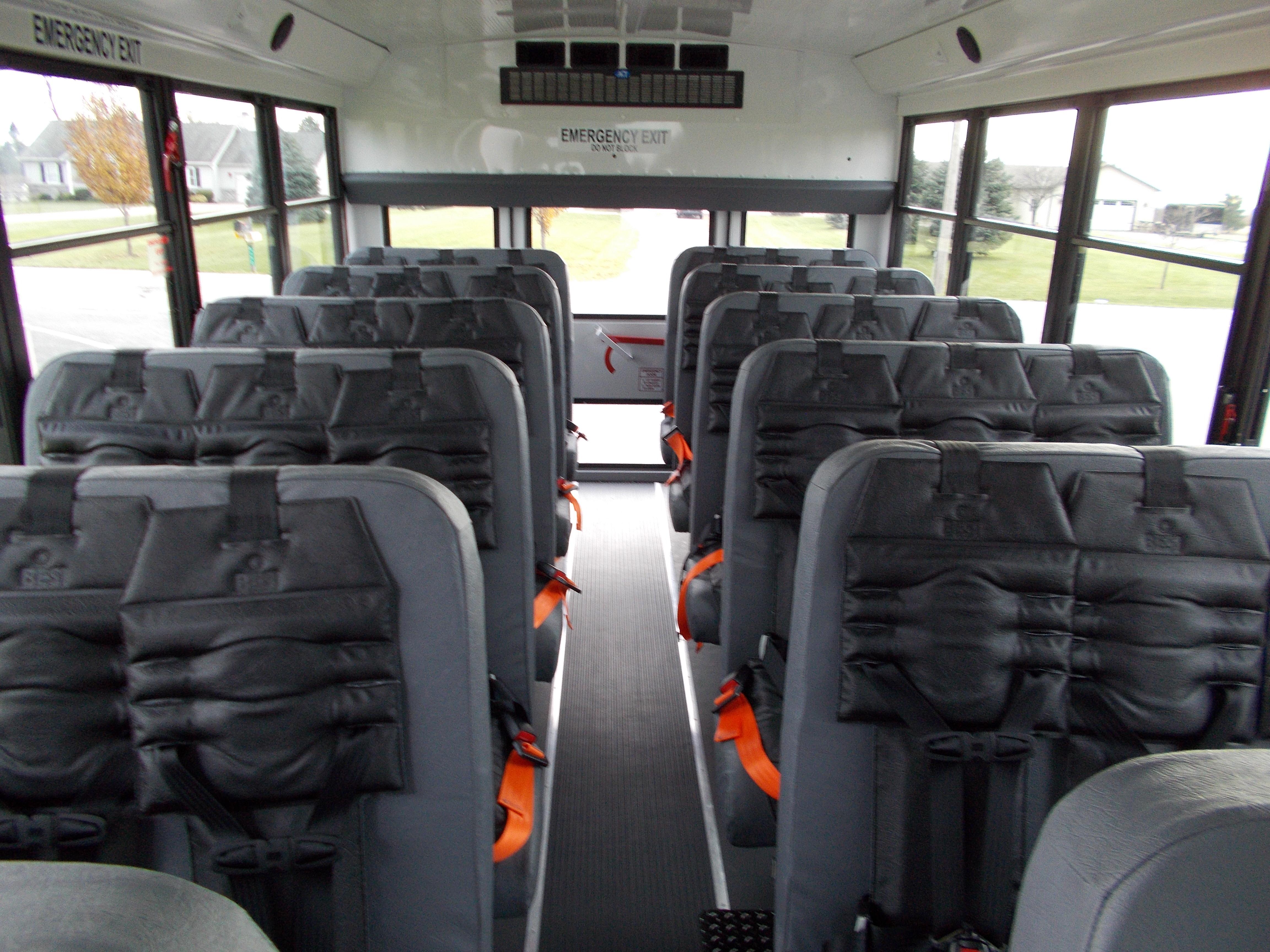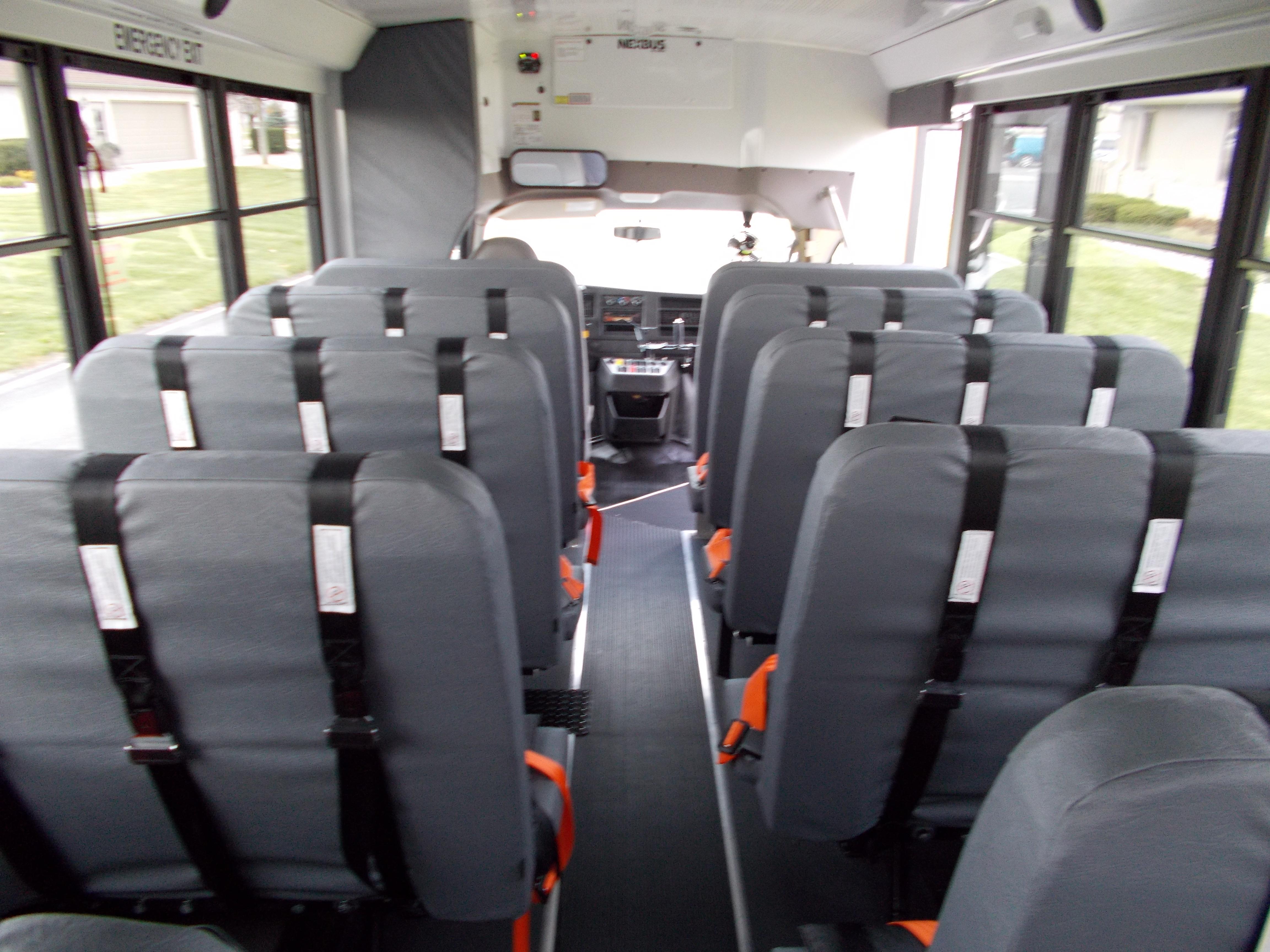 The NEXBUS Type A school bus by Collins is available on a Chevrolet, GMC, or Ford chassis with a gas, diesel, CNG, propane, or hybrid engine. With so many options, the NEXBUS can be built to your specifications. This bus has features unlike its alternatives, including larger passenger windows, external storage compartments, top of the line electrical panel, and SafeGuard XChange Seating.