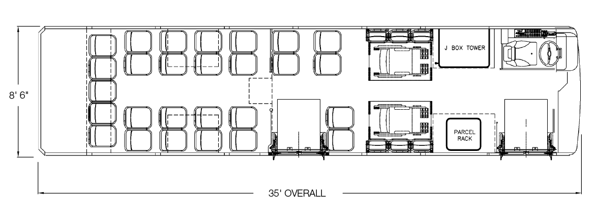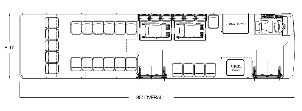 The Axess is perfectly designed to meet the most demanding ADA applications, with available front and/or center door ADA compliant wheelchair ramps. For special route applications, even doors with wheelchair ramps mounted on both sides of the bus of available. Extraordinary adaptability is standard on the Axess.
