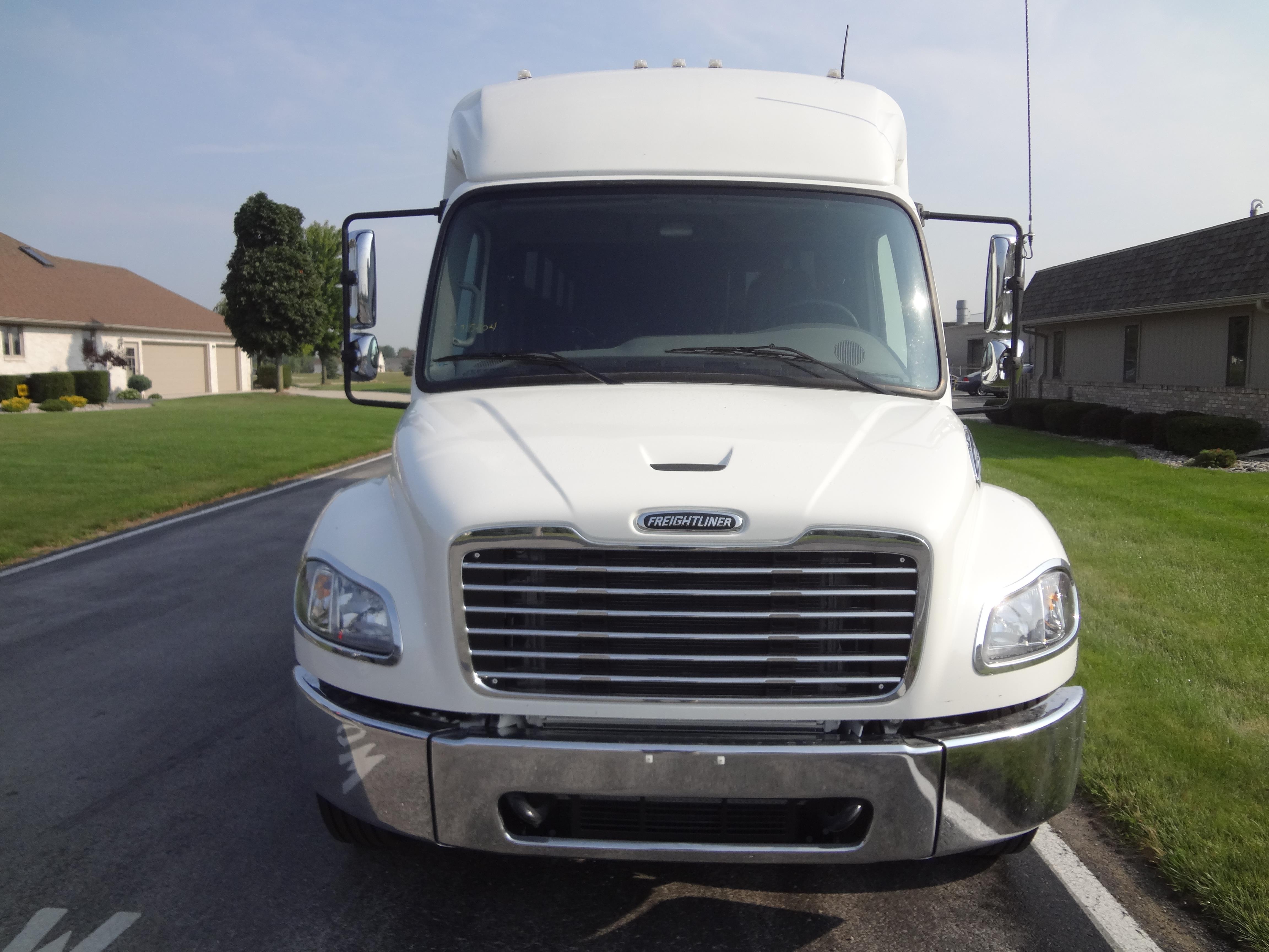 The Premier Shuttle Bus from Federal Coach is your large group transportation solution. Built on a heavy-duty Freightliner chassis, the Premier stands for durability without sacrificing luxury. The Premier offers available amenities like LCD flat screens, painted skirts, back-up camera and alarm and under belly storage. You will appreciate standard features like interior LED lighting and large touring windows. With an all-fiberglass body and one-piece fiberglass roof, the Premier sets the standard in large bus luxury. The Premier offers seating from 39 passengers with two wheelchairs plus driver up to 44 passengers plus driver. Available in 36 or 40 foot models, the Premier also gives you options like rear and overhead luggage for longer excursions. With the Premier Shuttle Bus from Federal Coach, your passengers will experience style and comfort like never before.