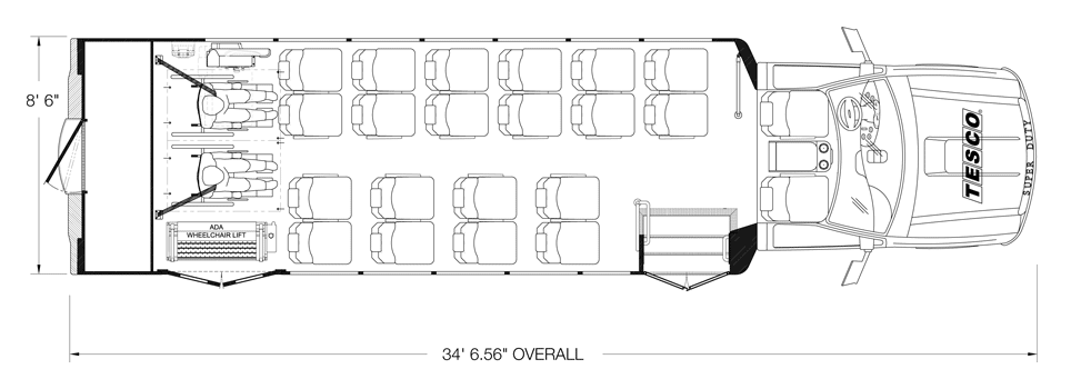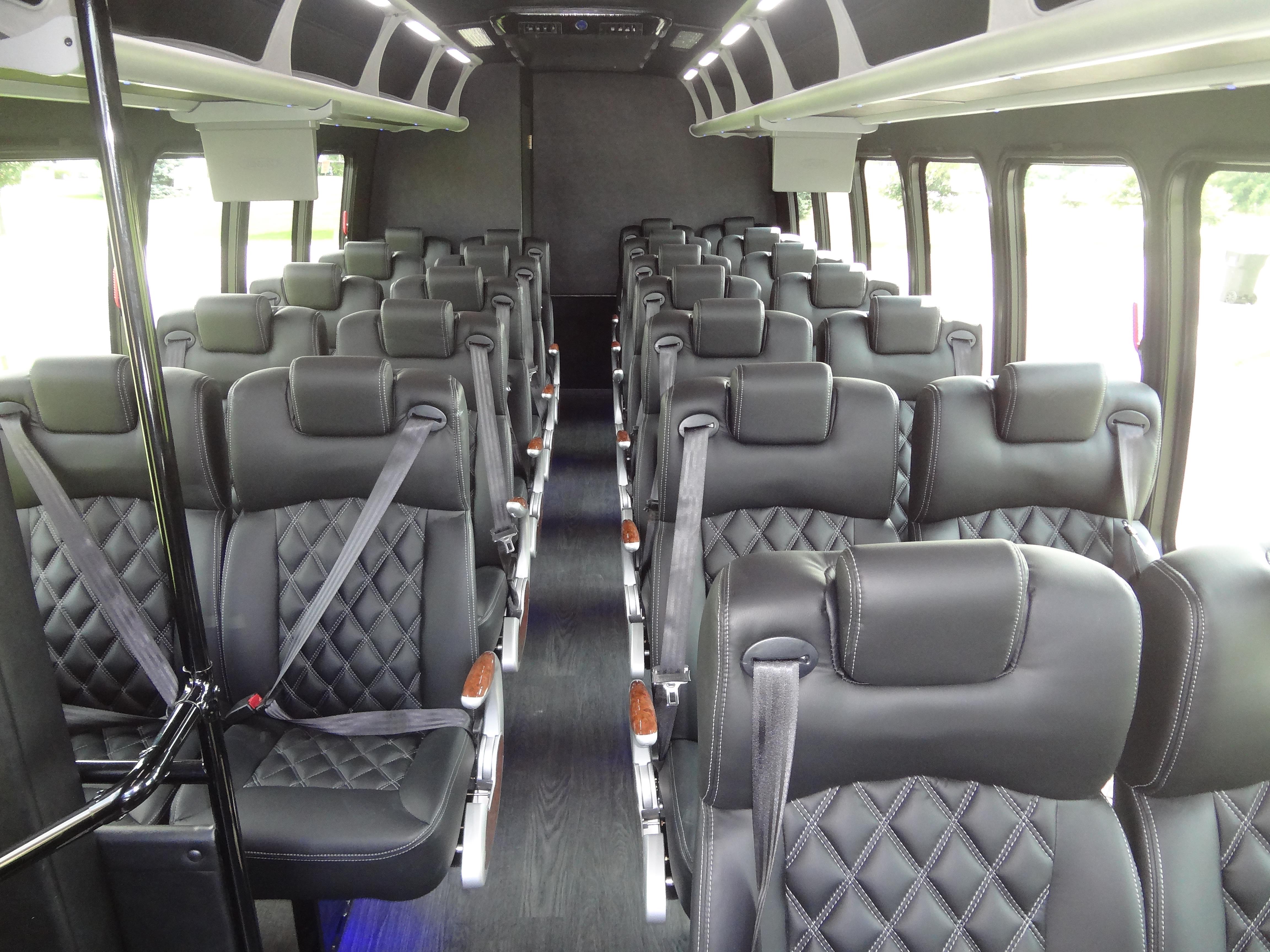 The Odyssey XL F550 shuttle bus and motorcoach series of buses that provide up to 37 passenger capacity are available on the Freightliner chassis. Bus road stability, passenger comfort, dependability, quality and safety are a main concern for the owners of an Odyssey XL F550. More passenger capacity for church buses, college buses, city and county transportation authorities, assisted living buses, cross-country touring companies, excursion companies and many more transportation customers can be found selecting the Odyssey XL F550. DESIGNED TO MEET OR EXCEED APPLICABLE FMVSS STANDARDS and FORD QVM