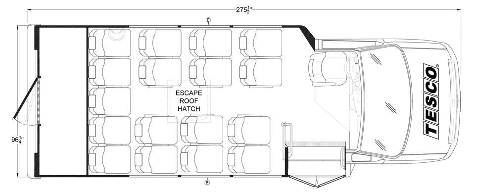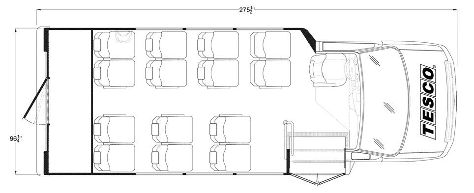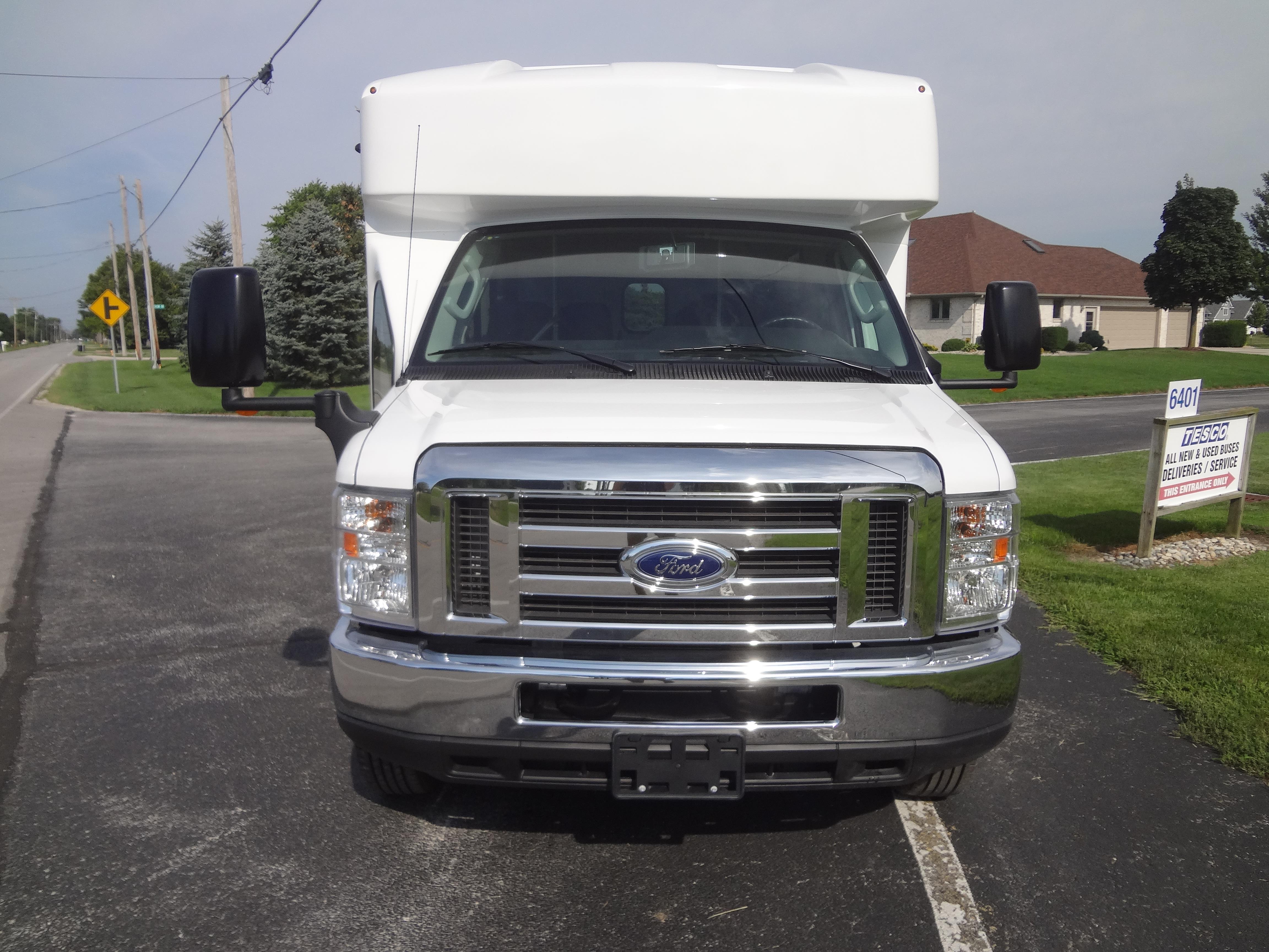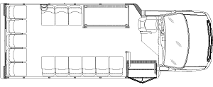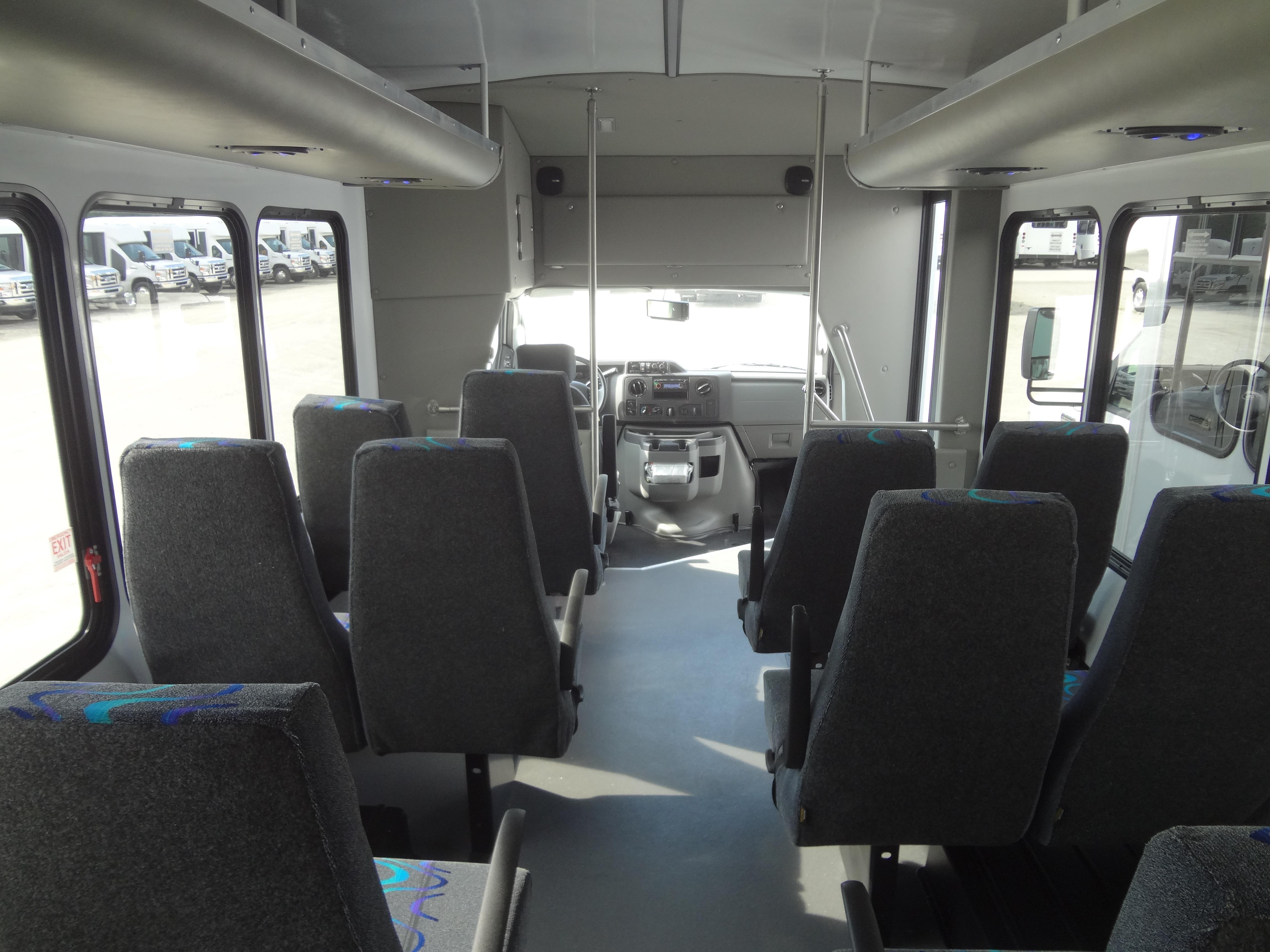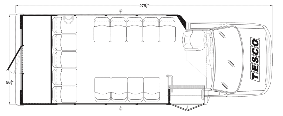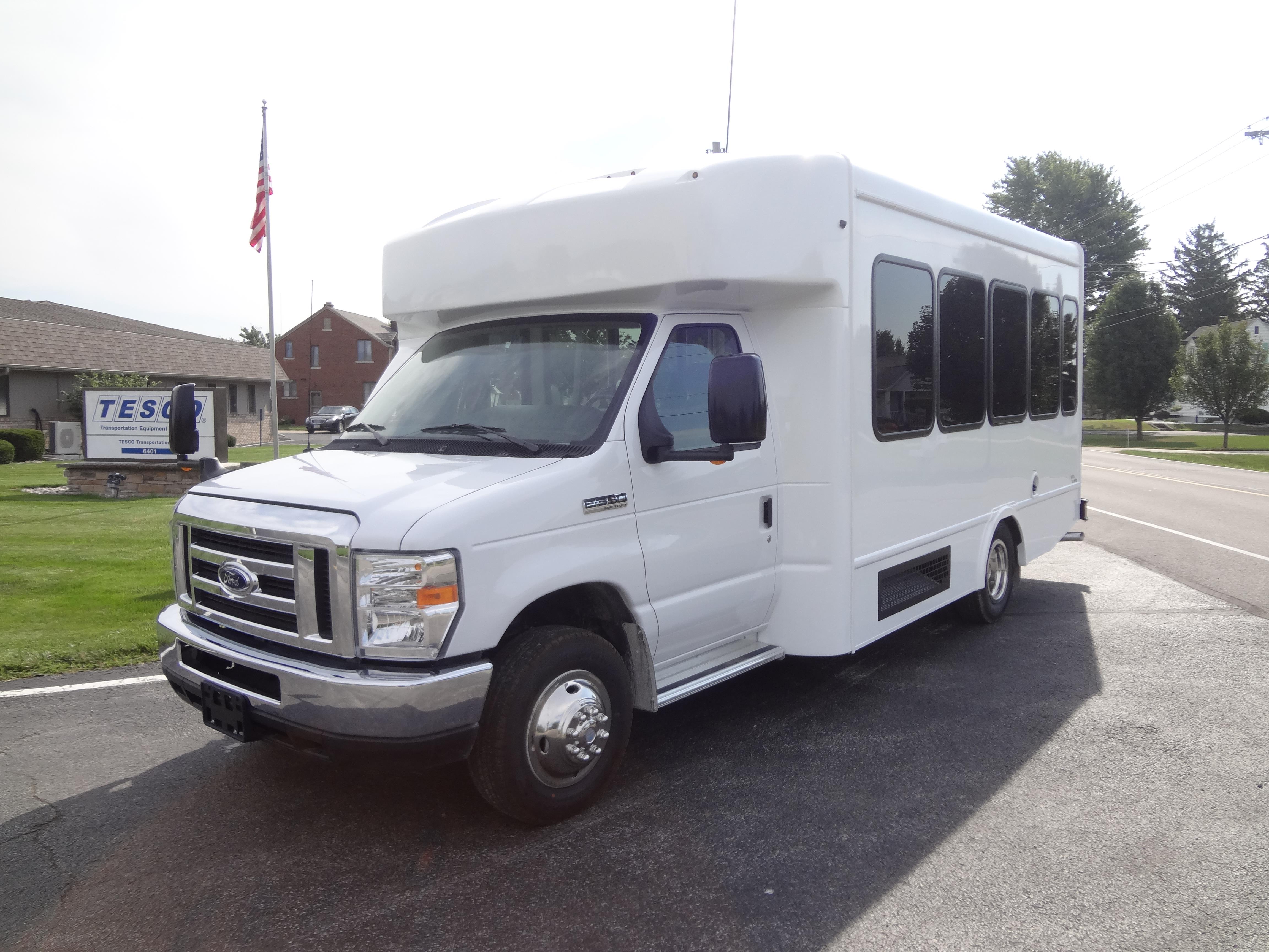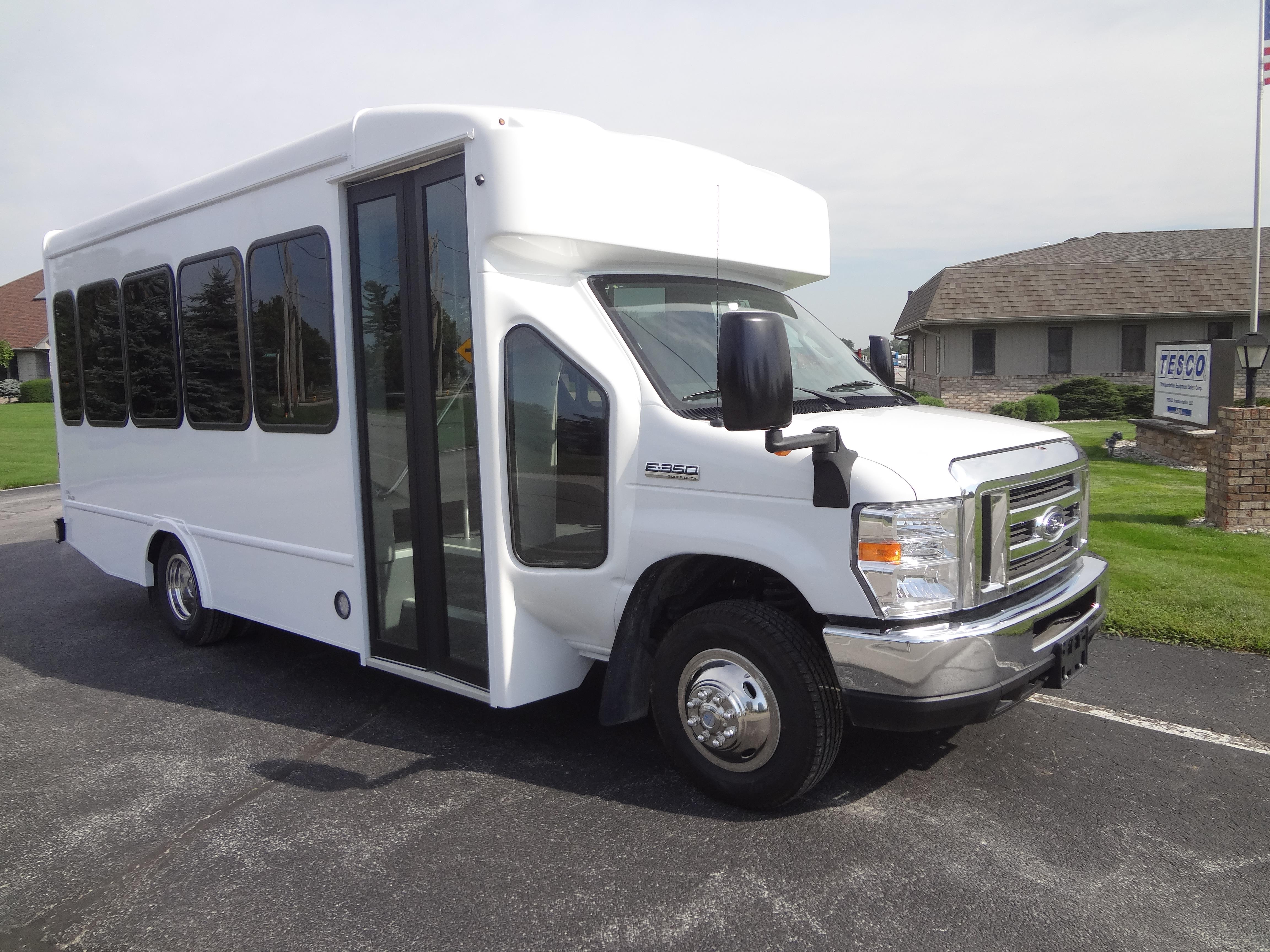 The Terra Transit shuttle bus is an economical compliment to Turtle Top's mid-size fleet. This abridged version of the Odyssey also offers seating for up to 25 passengers (plus driver) and maintains the same safety standards that Turtle Top is known for. Your riders will find it easy to enter and exit with ample headroom and aisle passage. With a variety of floor plans, you can meet your needs for storage, seating preferences, and wheelchair accessibility. A full roll cage, quality construction, and 2-year warranty make this the most affordable and practical choice for safe, dependable transportation. Count on a Turtle to keep you moving forward! DESIGNED TO MEET OR EXCEED APPLICABLE FMVSS STANDARDS and FORD QVM