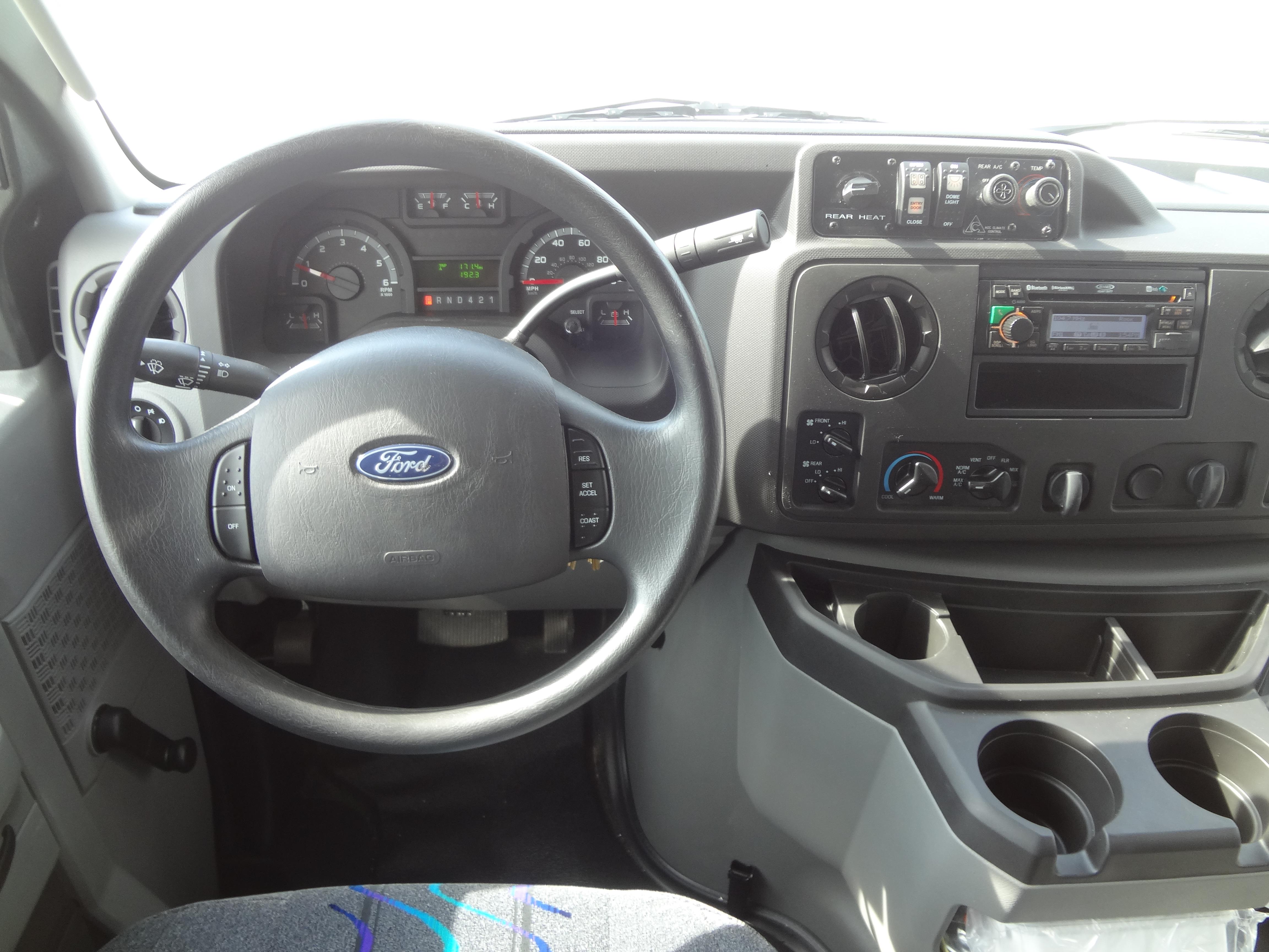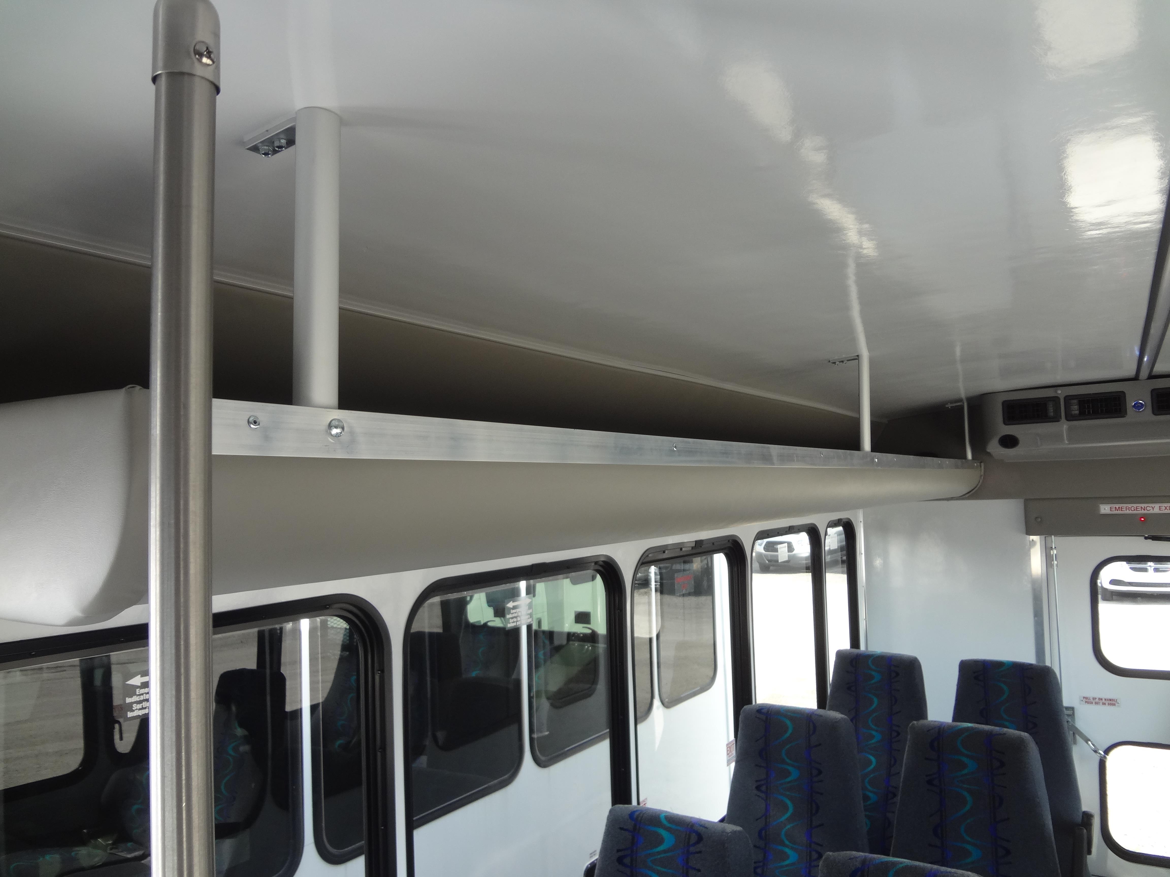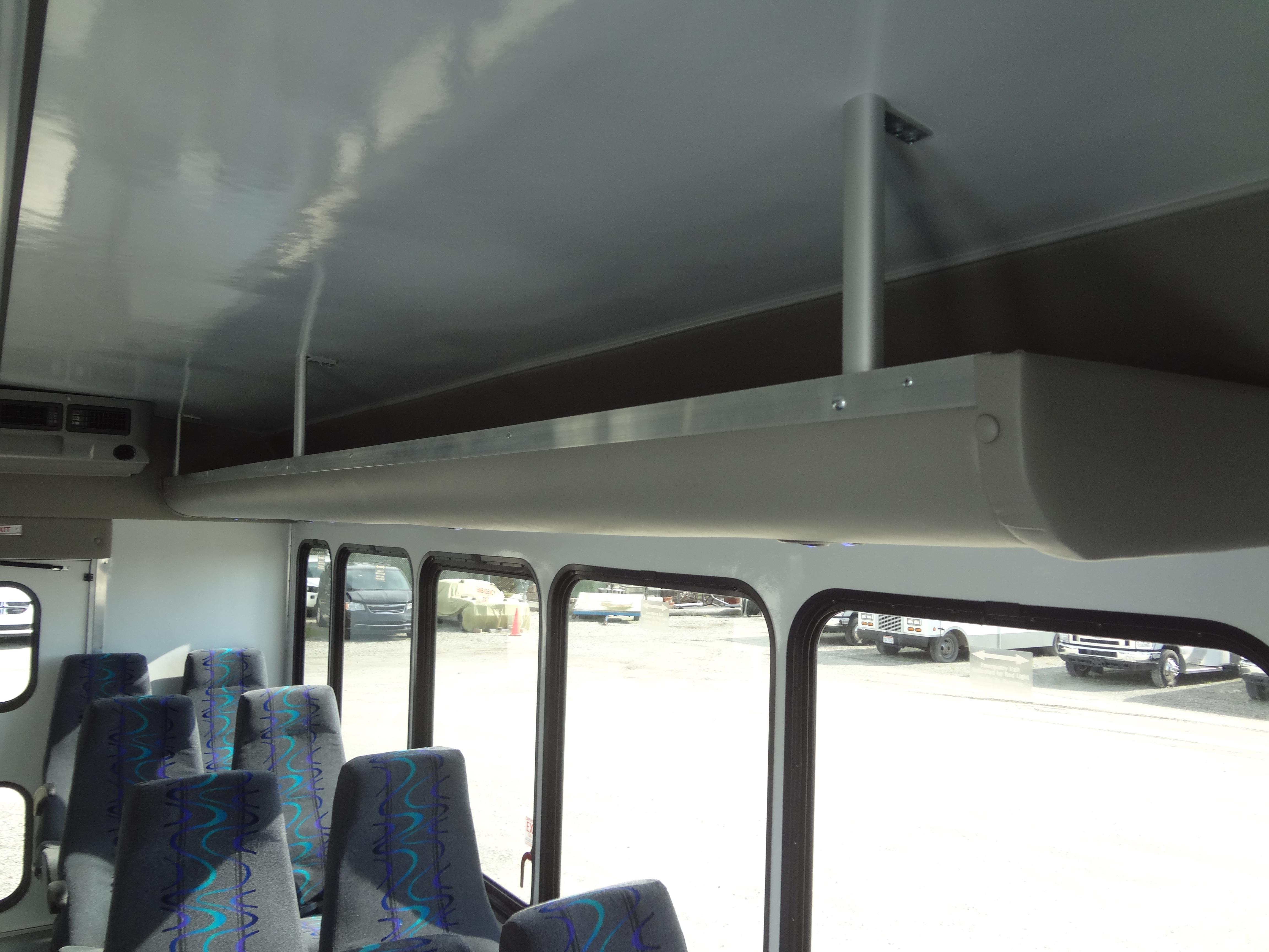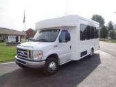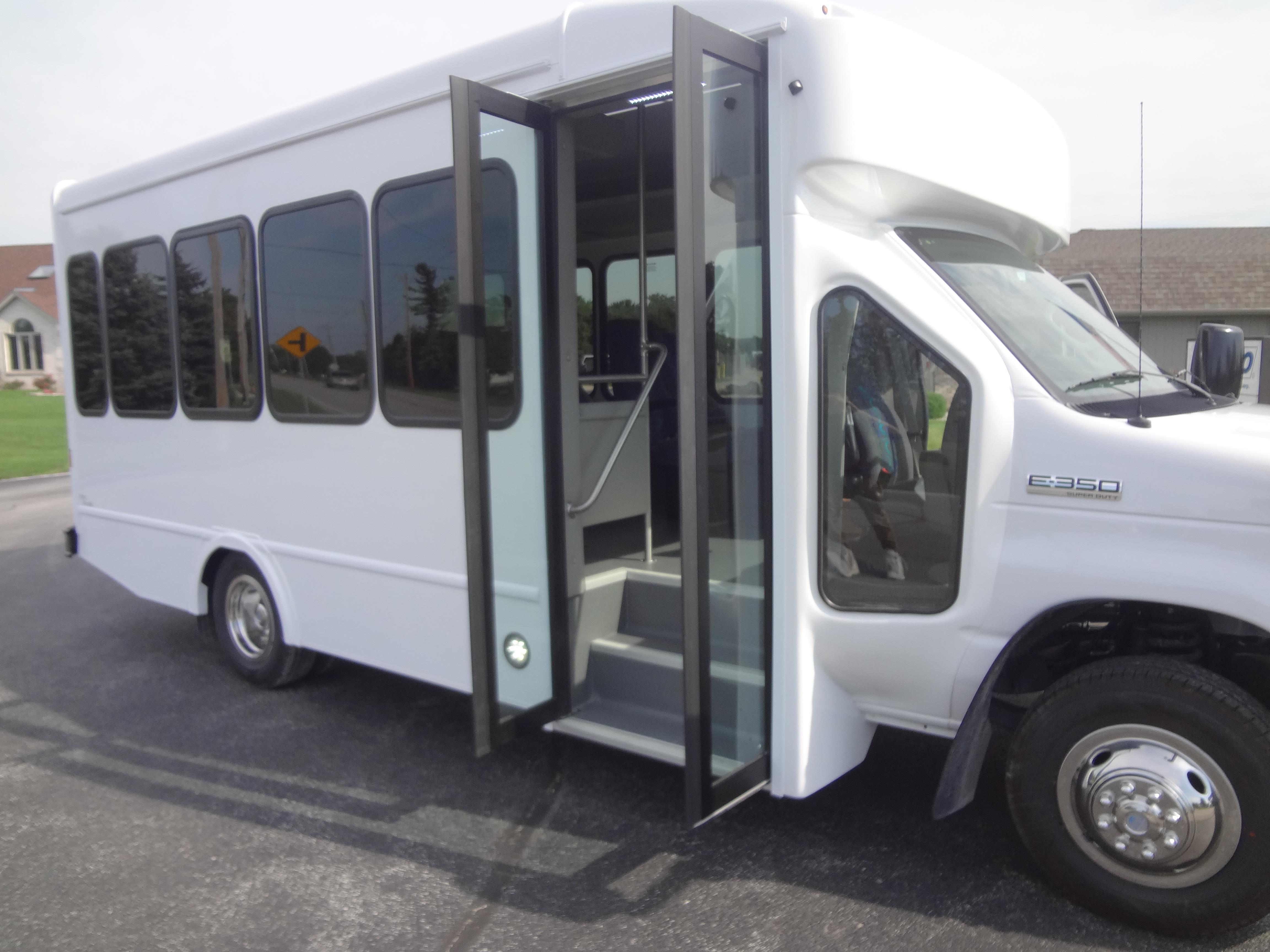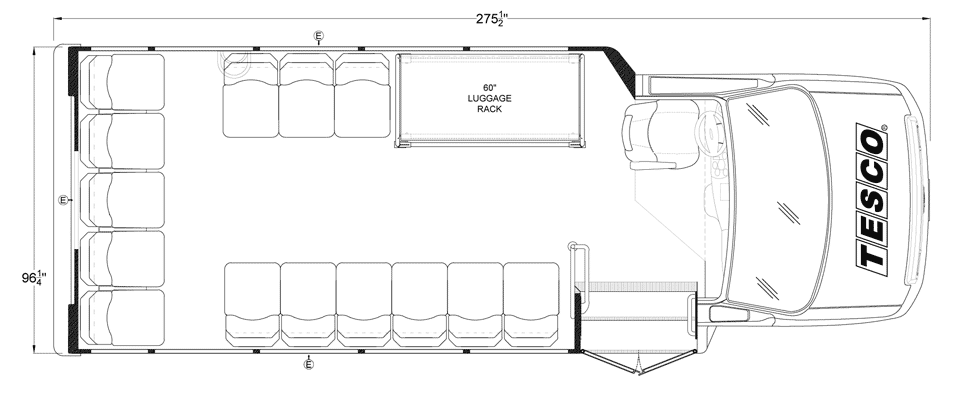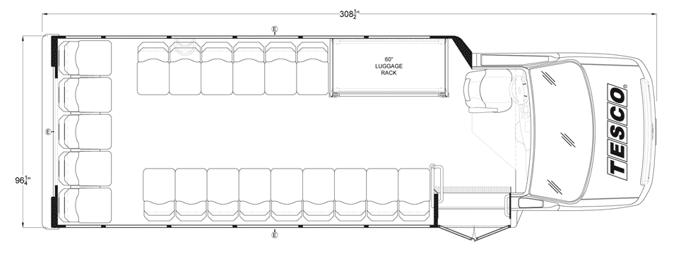 The Terra Transit shuttle bus is an economical compliment to Turtle Top's mid-size fleet. This abridged version of the Odyssey also offers seating for up to 25 passengers (plus driver) and maintains the same safety standards that Turtle Top is known for. Your riders will find it easy to enter and exit with ample headroom and aisle passage. With a variety of floor plans, you can meet your needs for storage, seating preferences, and wheelchair accessibility. A full roll cage, quality construction, and 2-year warranty make this the most affordable and practical choice for safe, dependable transportation. Count on a Turtle to keep you moving forward! DESIGNED TO MEET OR EXCEED APPLICABLE FMVSS STANDARDS and FORD QVM