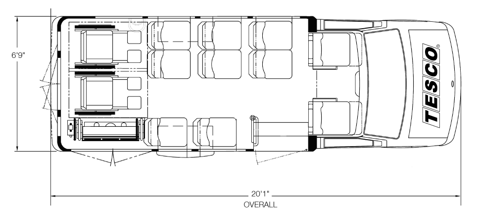 This model includes a true five-sided structure that sets the standard in industry safety. The aerodynamic exterior and comfortable interior feature an enormous passenger view window and sophisticated lighting packages. Occupant counts from 1 to 18 are welcome with ample seating making the new VanTerra truly the head of its class.